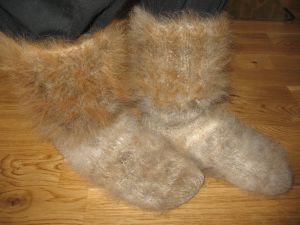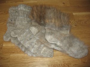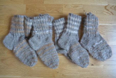 Warm and comfy socks, made of St. Bernards wool (mixed with sheepwool). On picture there are sizes 38-40 (5-7), other sizes possible. Price: 45 euros/ pair + shipping.